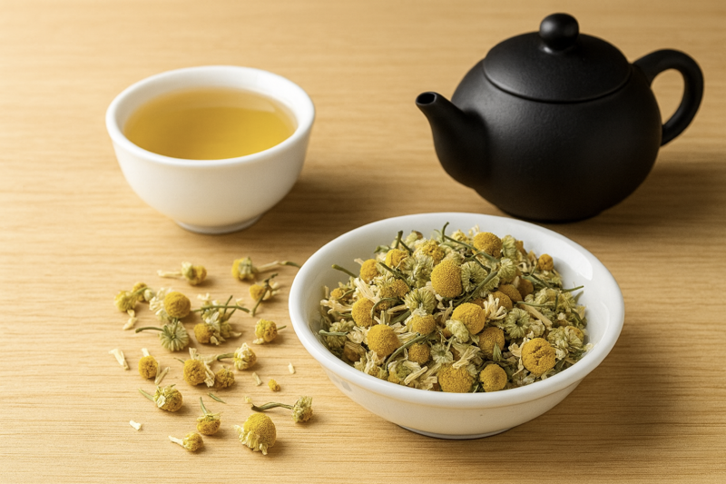 - Tea-to-water ratio~2–3 g dried chamomile flowers per 200 ml water.